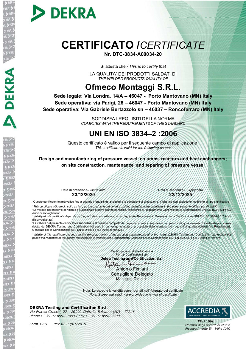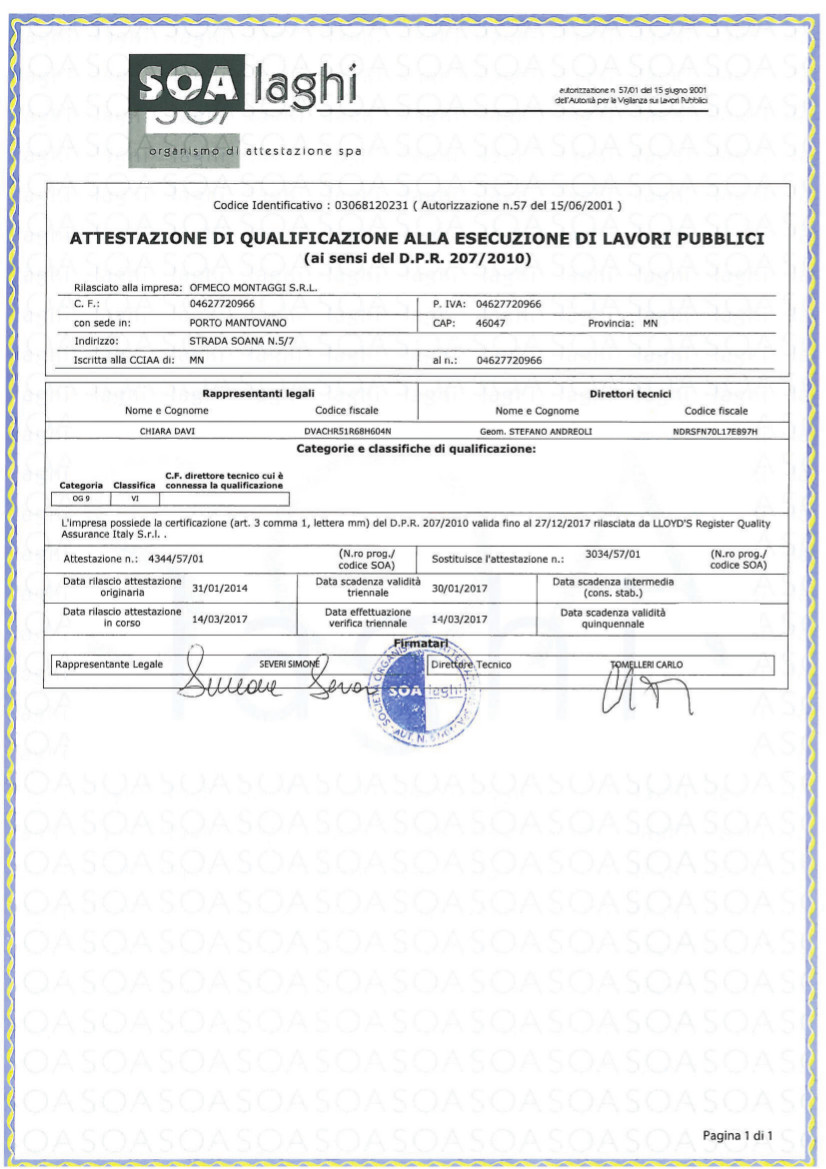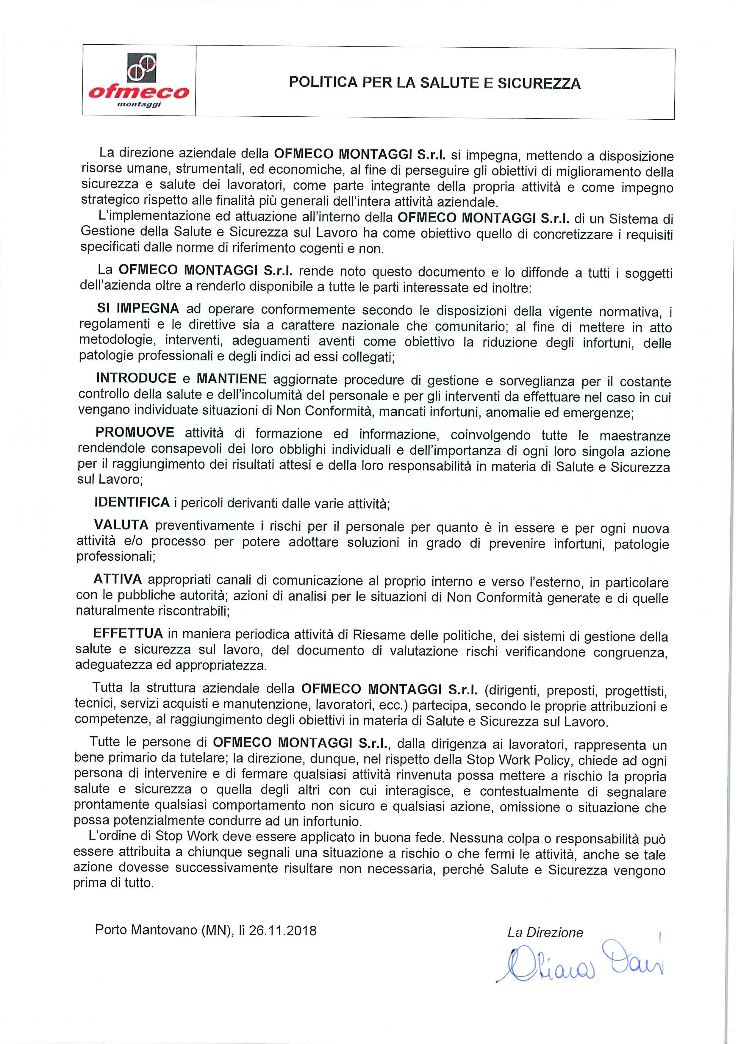 Ofmeco Montaggi, con sede operativa in località Malpensata (Porto Mantovano - MN), dispone di diversi siti produttivi nel nord Italia e di uno yard di 1.200 mq, strutturato ed attrezzato per attività di prefabbricazione ed assiemaggio, situato presso l’area portuale di Governolo sulla idrovia Fissero-Tartaro-Canalbianco, che da Mantova arriva fino all'Adriatico ed è navigabile 365 giorni all'anno.